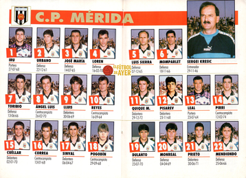 2- Mérida: Leal; Urbano, Loren, Momparlet, Monreal, José María; Correa, Pogodín (Dulanto'74), Reyes; Sinval (Quique Martín'84); y Prieto (Pirri'86).